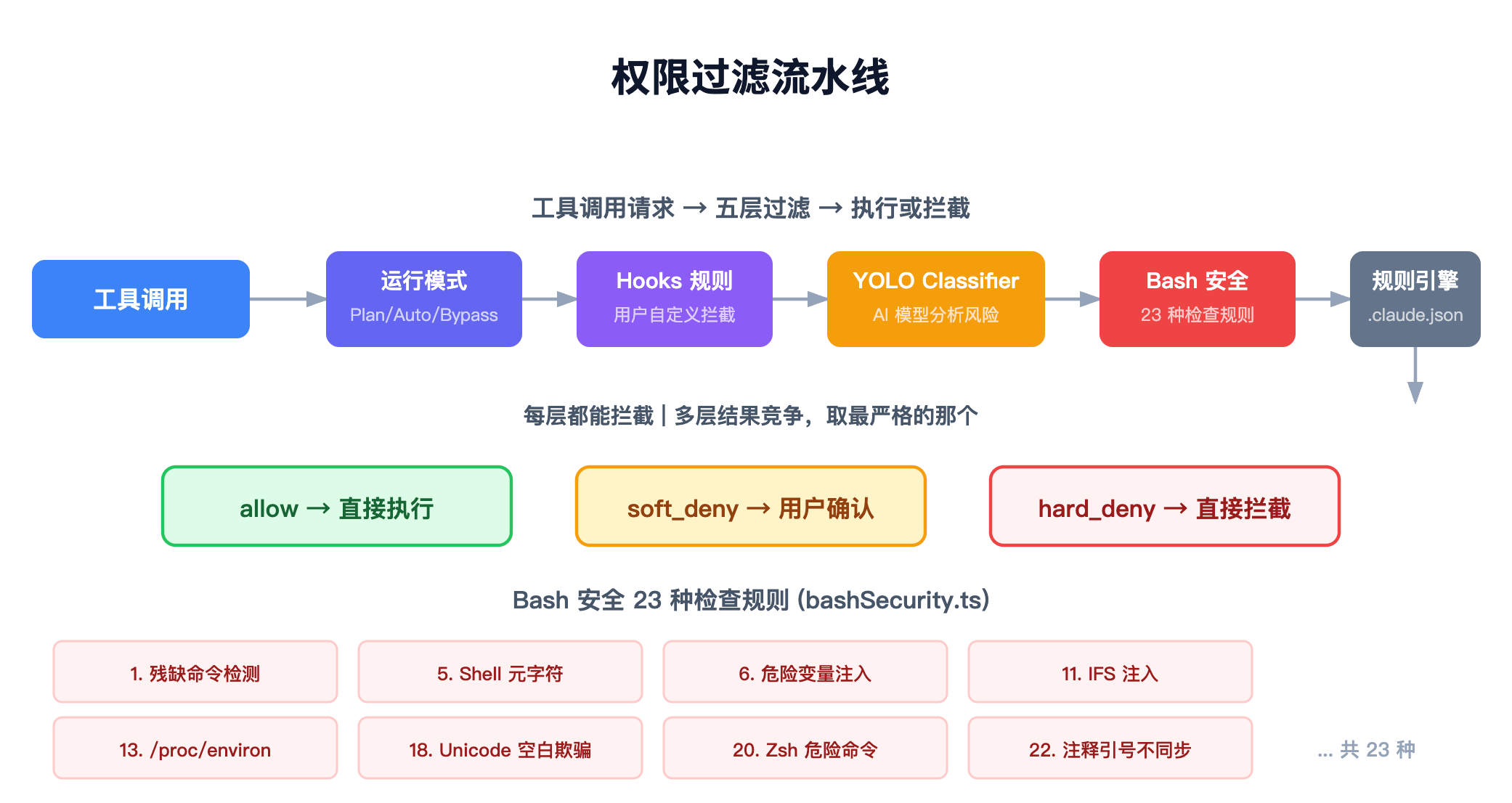 比如第 18 条的 UNICODE_WHITESPACE,说明 Anthropic 的安全团队考虑过用 Unicode 零宽空格来混淆命令的攻击手法,让安全检查器看到的和 shell 实际执行的不是同一条命令。还有第 20 条针对 Zsh 的 zmodload 命令,这个命令能加载模块绕过常规的文件和网络检查,总之防护做的还是很周到的。