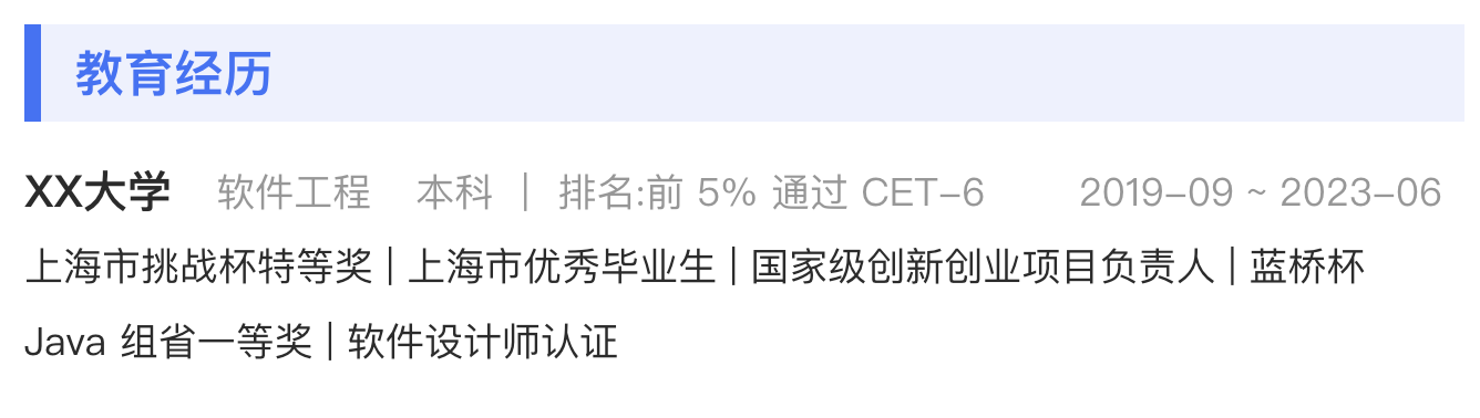 对于大多数同学来说,教育背景就一行,奖项也就一两行,没必要分成两个板块单独写。合在一起更紧凑,省下来的空间可以留给工作经历和项目经历,毕竟那些才是简历的核心。