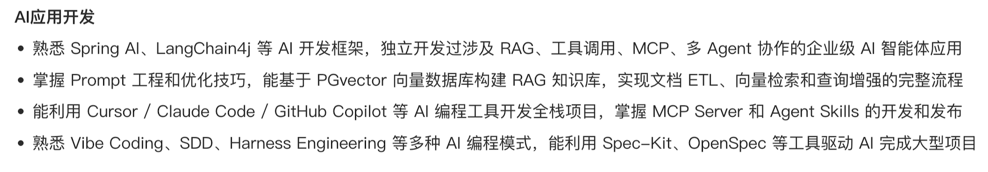 AI 应用开发、AI 编程工具、AI 编程模式这些不是刻意写给面试官装装样子,而是你真的在用、真的在学。