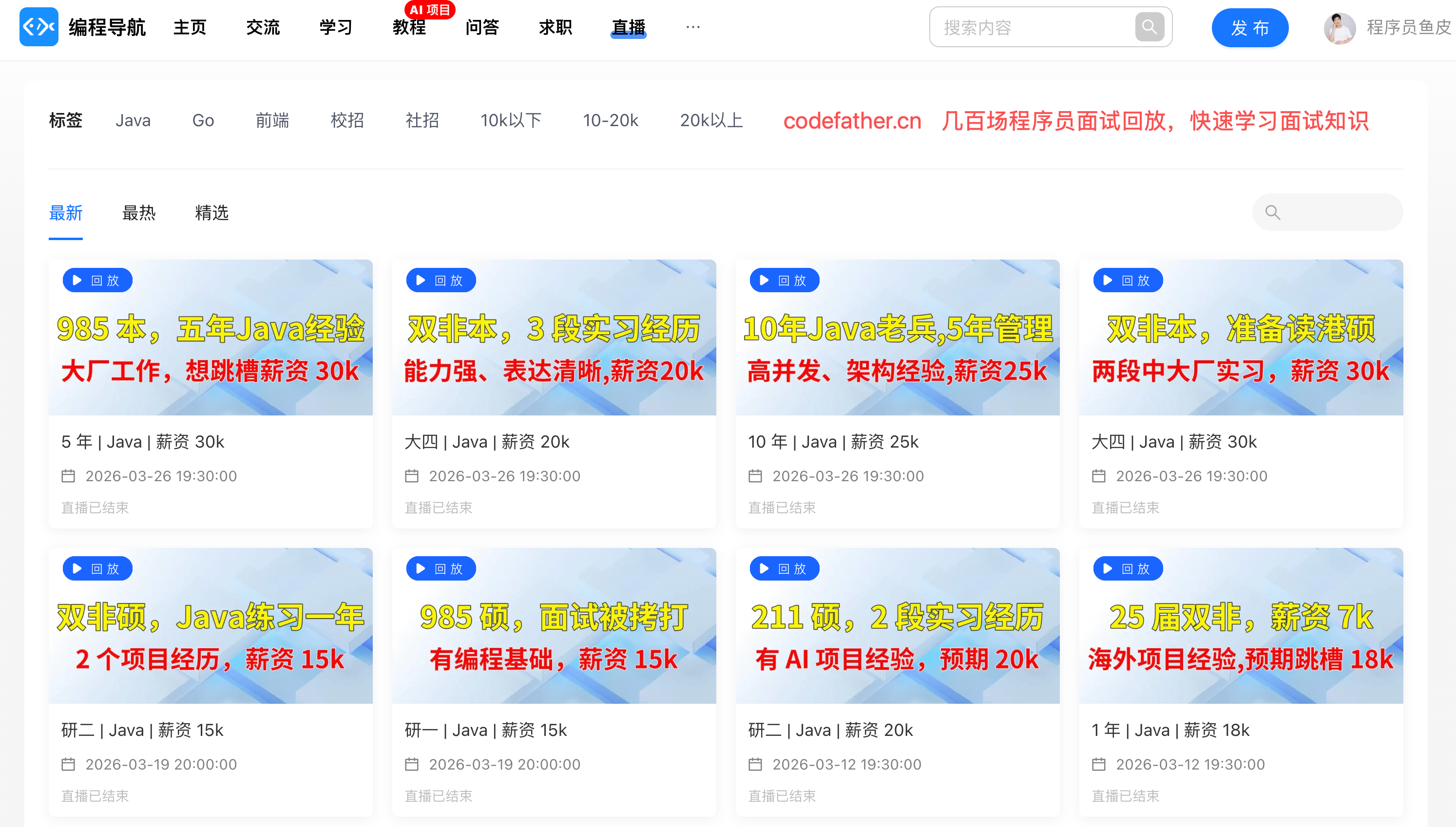 也可以到 编程导航 上看看真实的简历参考、以及我现场面试的几百个视频,换个视角看看别人的简历,也能发现自己的问题。大家加油!
