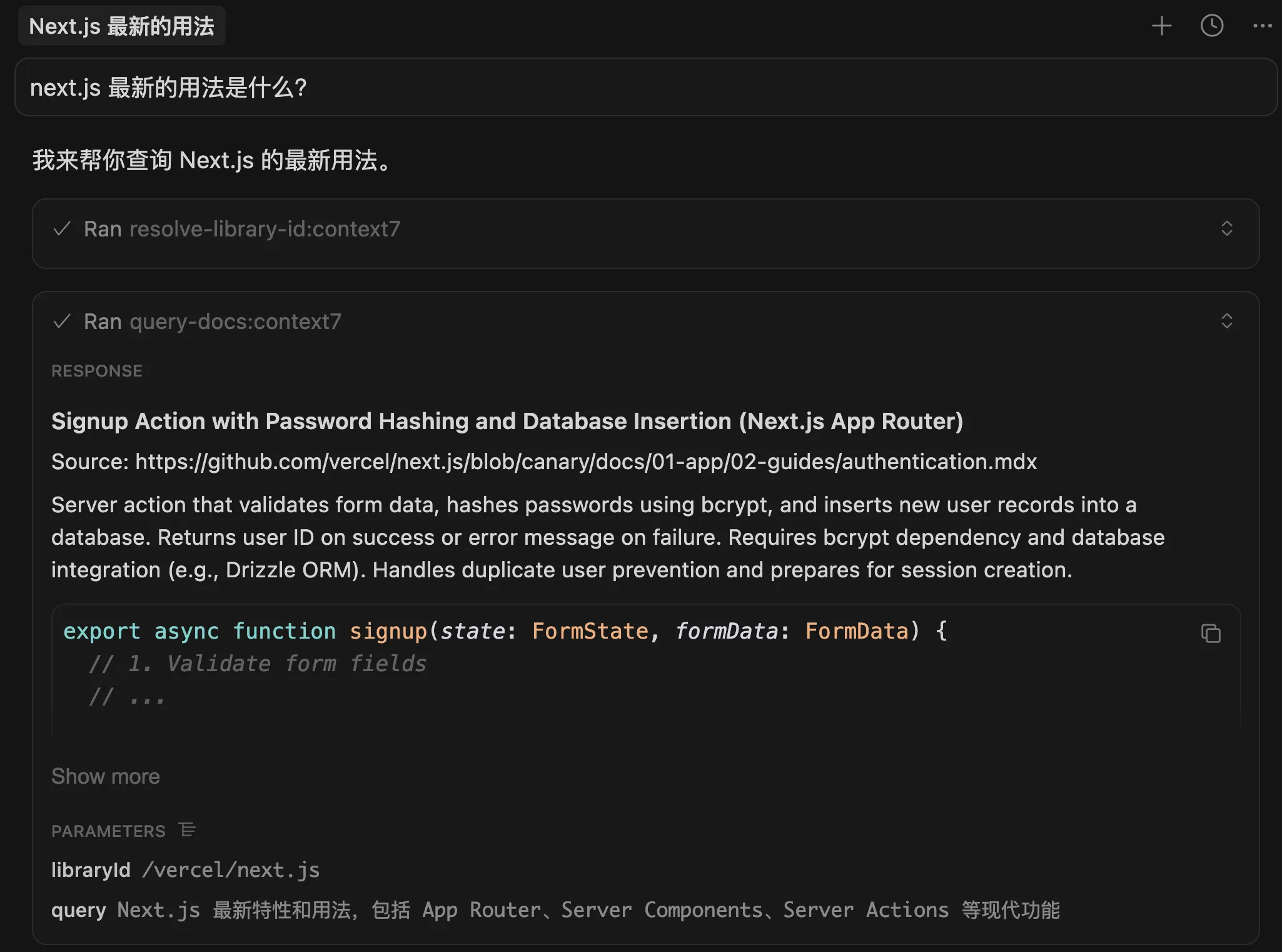 这样 AI 在开发过程中遇到不确定的 API 用法,就可以自己去查最新文档,而不是用过时的写法。