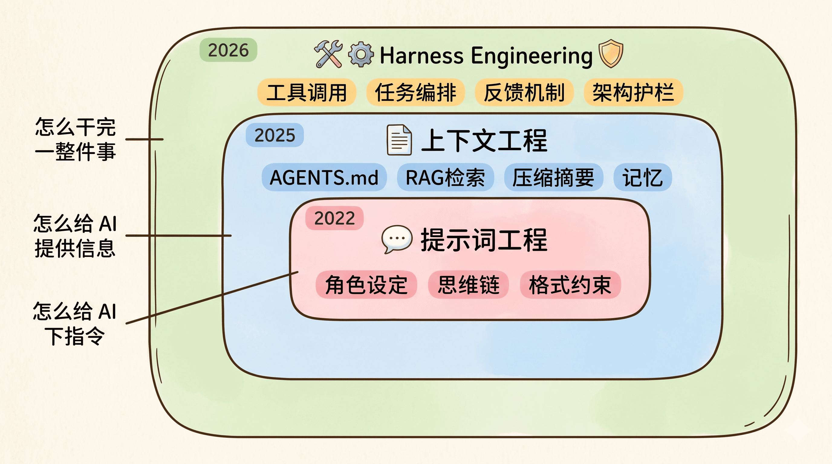 这就是最近在 AI 圈很火的 Harness Engineering。